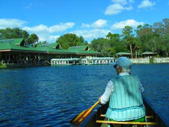 Cold morning but the promise of sunny skies and temperatures in the 70's by afternoon. I decided that our coach batteries should be holding their charge better than they have been. So we planned a busy day. Get propane filled, go grocery shopping, get new batteries even if they are not bad, then go paddling on the Silver River which is a beautiful wildlife filled trip. You start where it confluences with the Oklawaha River at a boat ramp and paddle against the strong current for 5 miles up to Silver Springs where all the glass bottom boats hang out. It takes 2 hours to go upstream and a easy float back, but today we had a 20 mph East wind blowing in our faces so we had a little more paddling on the way back. See the pictures of our trip below.