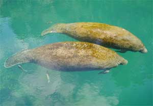 Another dreary cool day. Rain is forecast and temp's are in the 50's but we decided to take a drive to Homosassa Springs and find a place to launch our canoe. When the light drizzle stopped we parked next to a bridge and a resaurant that gave us permission to launch. We paddled upstream to the source of the spring. We had heard that about 50-100 Manatees winter here since the water is at a constant 72oF. We saw people in the water swimming and paddled in that direction. All of the sudden a small Manatee surfaced almost under our canoe. We looked around and I'm sure we saw at least 20 gentle giants swimming in the area. It was very hard to get a picture from the canoe with the sun reflecting off the water, but I stole a couple of pictures to show you what they look like. The day got sunny and warmer later but then cooled and it rained lightly overnight.