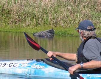 the Chassahowitzka River which is just south of Homosassa Springs. The last time here we saw some Manatees right where we launched but none were around this time. We paddled about 9 mi in the bay and up several small creeks. They said the high tide had just past but we sure found everything really low. I can see why there are not many power boats around here. You can barely get down the main channel. We saw lots of fish and birds and only one alligator on this day. It was very sunny and it got to the low 60's.