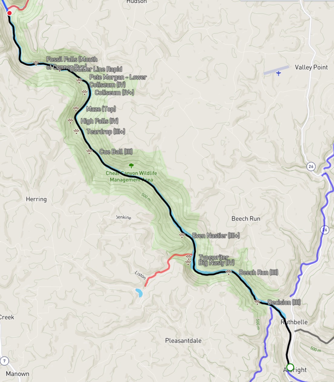 Paddlers traditionally go by the gauge painted on the bridge pier in Albright. The USGS gauge at the power Station has been moved to the bridge. So no complicated conversion is required. Just subtract about 10' to get bridge painted gauge. Note they now show the actual CFS.