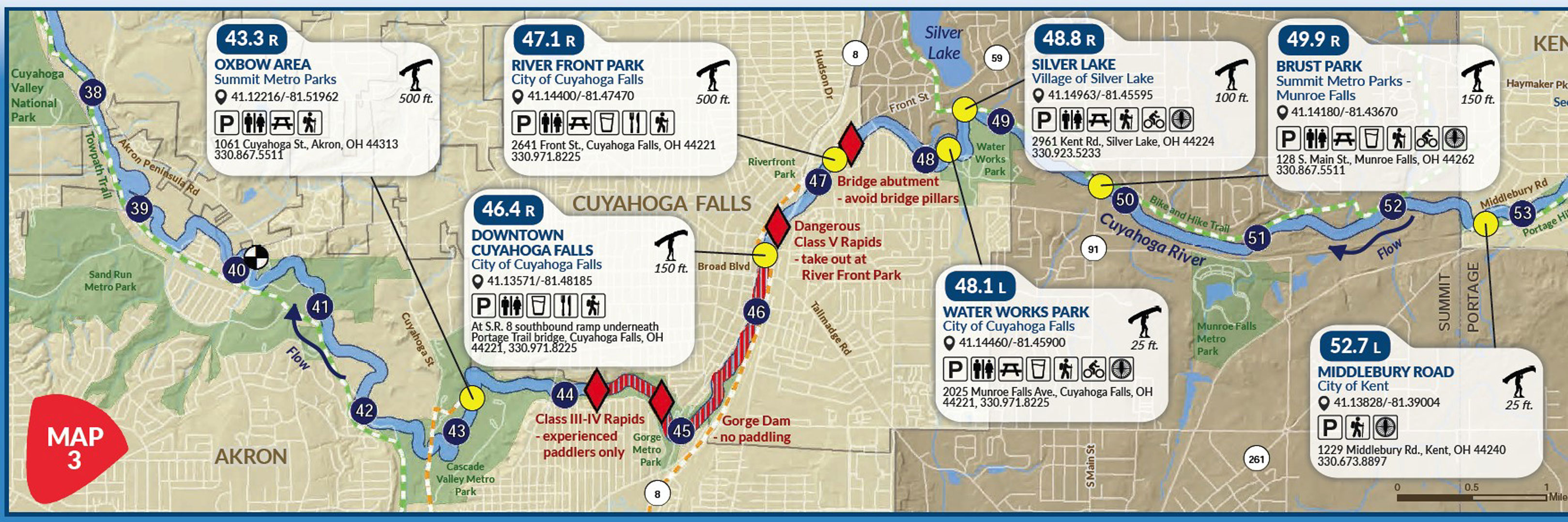 Lower Cuyahoga The National Park has a gauge at Jaite for Peninsula to Vaughn Rd or beyond.