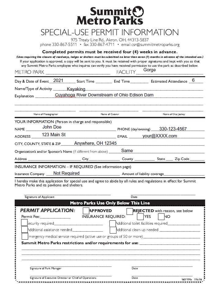 Get permit from this link, fill out on-line, save, print and mail in before attempting to run the section.