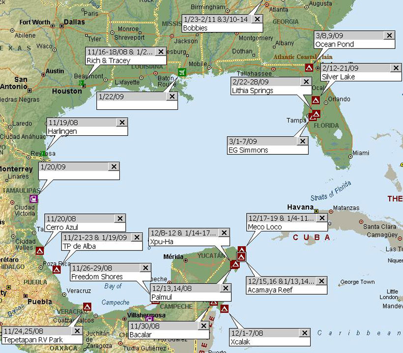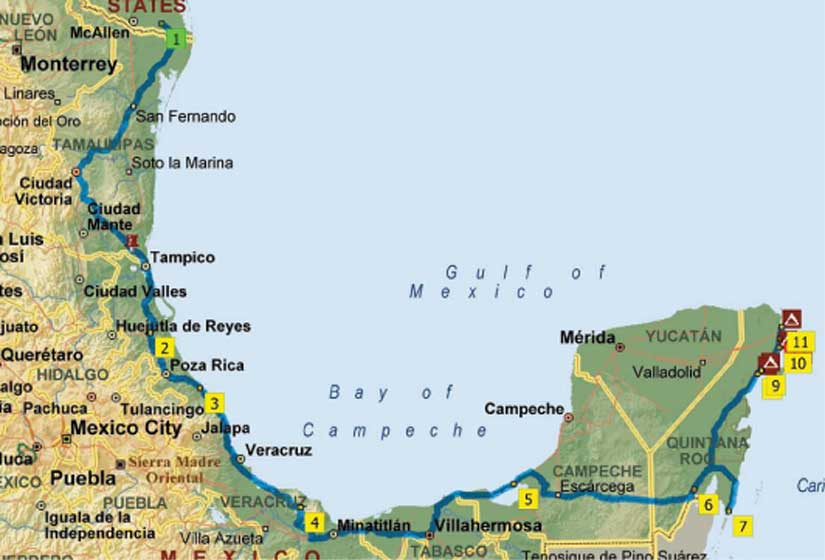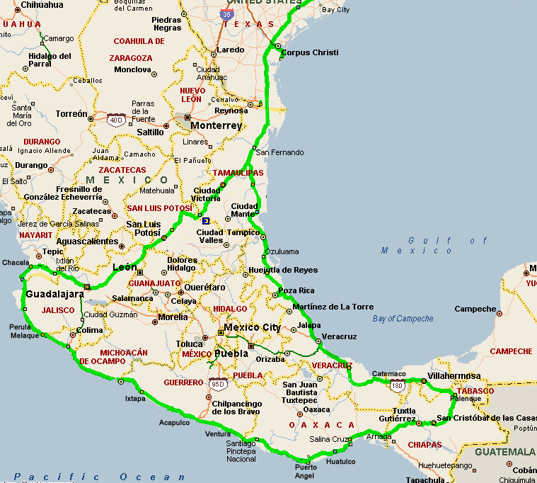 2008-9 Mexican Trip Blog in Chronological Order or see below for detail maps and travel times.
