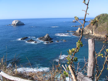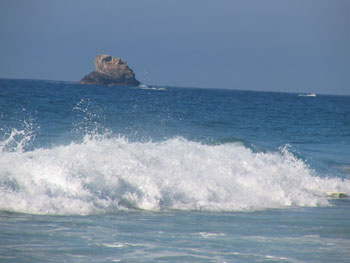 1/23-28/07 - We decided to leave and head for Playa Ventura about a 5 hour drive further NW. We had stayed here the last time at Cabana Perez and even though it was just a restaurant parking lot, we were all alone, had nice bath facilities and nice palapa to hang my hammock. The crashing waves were a mere 100 feet from the camper. A young couple from CO travelling in a 20 year old motor home that they just bought for the trip arrived later that day to join us. We had camped with them at Zipolite Beach and told them about this place. I guess we should quit spreading the word before the place gets too crowded. This year telephone service has arrived and the town must have 20 restaurants but few customers. I'm sure it must be a popular weekend destination for local people, staying in small hotels or pitching their tents under the palapas that line the beach. It sure is quiet here now, we will see how it is on Sunday when we leave. We plan to head for Acapulco on Sunday morning to find a campground at "Pie de la Cuesta" just North of town.