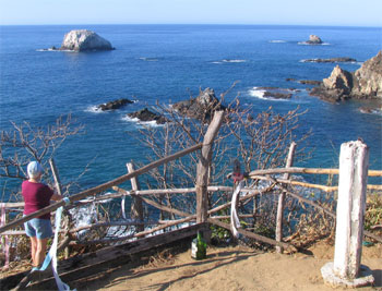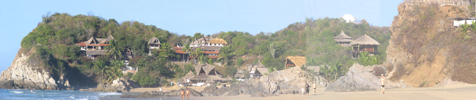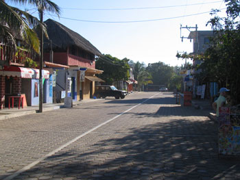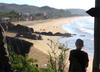 1/17/07 - Puerto Angel is a small fishing village on the coast of Oaxaca. It is small and never had that much tourism, however if you drive a little further you come to the famous Zipolite Beach. Why is it famous? It is the only Mexican beach that tolerates nudism. Mexicans are quite provincial and do not like the sight of people frolicking in the all together. However here they turn the other way as well as most of the sun worshipers, who turn the other cheek and stand facing the sea. Also like the West end of Roatan it caters to the backpack crowd with tents and hammocks.
