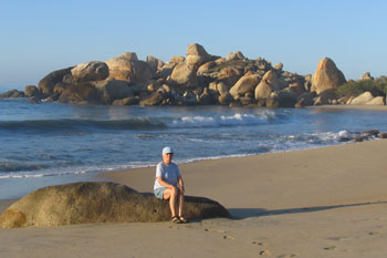 1/19/07 - We are still at Zipolite, temperatures during the day are over 90oF, but at night it cools to 69oF, which actually requires a light blanket. We do all our walking in the morning before the heat of the day. We found out that our favorite restaurant "Piedras de Fuego" is still serving great food for about $5 for a big dinner of shrimp or fish.