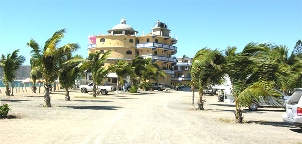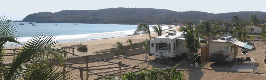 Well we lucked out. The owner let us in, even though the Federalies chased everyone out just the week before. He said we could park but there was no water, electricity or sewers. It turned out the electricity worked; there was water, which we only used for washing the salt off the RV. The sewers were sealed but we dumped on our way in past the legal campground so wouldn't need to dump again until we left. The place was great. The Lagoon on one side, ocean on the other, no other campers, no barking dogs, roosters or nearby discos.
