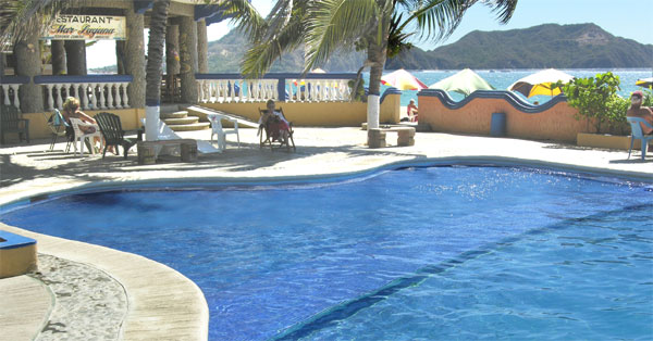 On Sunday 2/11/07 we headed for Melaque only 150 km NW of Maruata. We stocked up in Manzanillo at a Commercial Mexicana. We have stayed at Laguna de Tule, a beautiful hotel, restaurant, pool & camp complex for the past few times but had heard that their new expanded campground was encroaching on Federal land and was shutdown. But we would try our luck anyway. Others we met over the past few weeks were going to the "Almost Free" campground in Melaque or would park on the street in the town of Barra de Navidad.