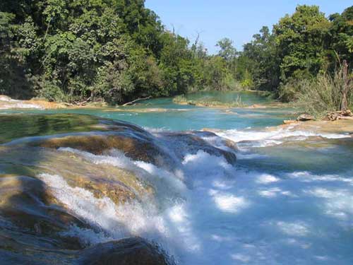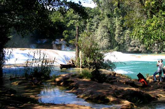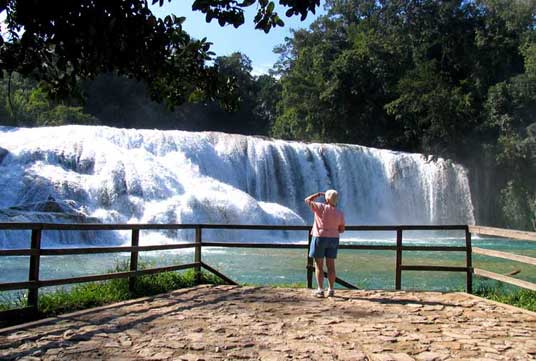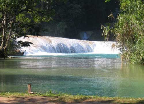 We didn't really see any need to stay another day so we left in the morning for to see the beautiful water fall at Misol Ha and the multiple turquoise falls at Aqua Azul. We thought maybe we would camp there but they had no services and you camped in a big parking lot with no security of any kind.