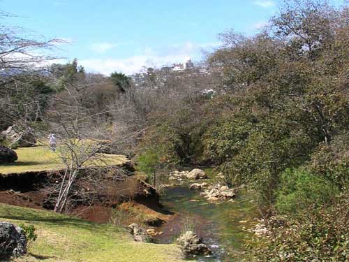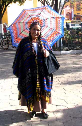 We decided since we had started early and it was only 100 miles to San Cristobal de las Casas that we would just go there. Well it's very mountainous and although the roads were in good repair they must have had Topes (Mexican speed bumps, about 6" high) every quarter mile. Everyone wanted you to slow down, so you would buy their food or crafts. Some ingenious kids, not having a Tope to stop traffic would pull up a rope in front of you so that you would stop and buy anything they were selling. It took us 4 hrs to get to the narrow streets of las Casas. We were scrapping the curbs, clearing cars by inches but we made it to the camp only to find out that there was an easier way in that didn't involve going through the center of the city. The campground is in the country on the edge of the city, it has nice large grassy sites and is very secure and quiet. It is much cooler at this altitude 7000', and it goes down into the low 30's at night. Actually the coolest place since we left Cleveland. However the clear blue skies warmed up to mid 60's by noon. The Rancho San Nicholas campground is very nice and quiet with grassy sites and shade trees.