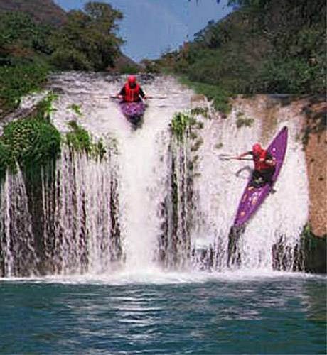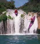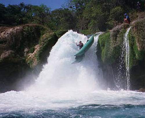 Our last full paddling day found us on the beautiful 3-mi. section of the El Salto. There were waterfalls from 3 ft to 25 ft and Class IV rapids. This is travertine country with ledge after ledge of fun waterfalls. This is a more advanced run than the Micos though there are still plenty of sneak routes to allow intermediate paddlers to enjoy the rivers.
