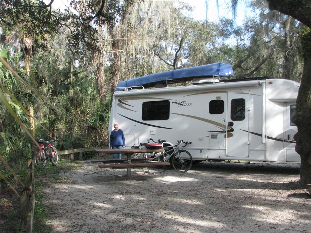We hoped we could find a site at Fort Desoto in St Petersburg but there were no reservations available starting on a Thursday so we decided to go back to one of our favorite campgrounds, Lithia Springs. We got there at 9 AM on Thursday morning and they said that 5 people hadn’t renewed and maybe somebody would be leaving, check-out time is 11 AM. We lucked out, a camper left Site 37 which was the same river campsite we stayed at last month. It was the only site that became available that day.![]()