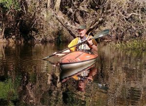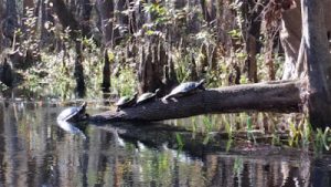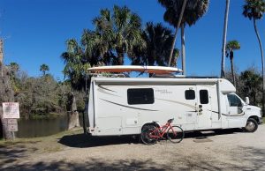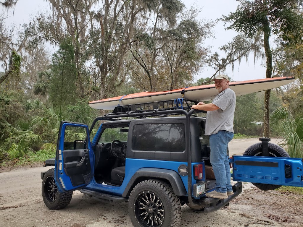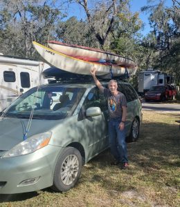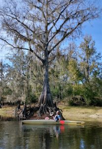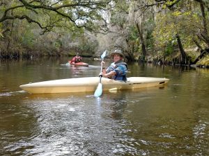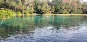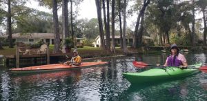 Rainbow Springs, like Silver Springs used to be a private park and zoo. But years ago FL State Park bought the spring and park in Dunnellon, FL It’s been years since I have been here, I used to camp at the park right on the river but they reworked the campground and we never came back. I camped in a quiet spot at Walmart and got to the park at 8:30am. It is a long walk from the free large parking lot to the put-in ramp and swimming area. I have a nice canoe cart and had no trouble getting my kayak to the launch. There is a nominal $2 fee per person to walk into the park. I walked back and waited for Erin & Kathy to arrive. While they were running the shuttle, I dragged their kayaks down the trail with my cart as well.