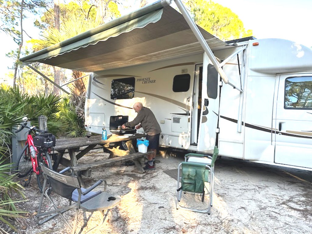 It is 1-1/2 mi through the camp on the paved camp roads to the Withlacoochee StateTrail. You have three nice options from here, you can bike 11mi to the southern terminus, bike 12-1/2 mi to Brooksville on the Good Neighbor trail or bike 37 miles North to near the Dunnellon. That’s too far for me do I usually just do a roundtrip ride to Floral City and back.