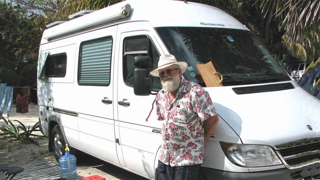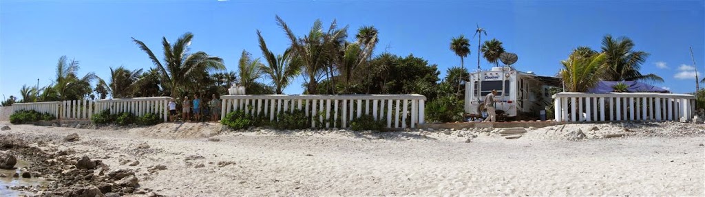 Three new campers arrived in the past couple of days. Elaine and Reed from New Mexico, who have been writing me about Mexico travel for the past month. Two motor homes with campers from France also arrived. One left early today for Mahahual and the other is heading North to Meco Loco. They are both going to be storing their vehicles and flying back to France in the next week.