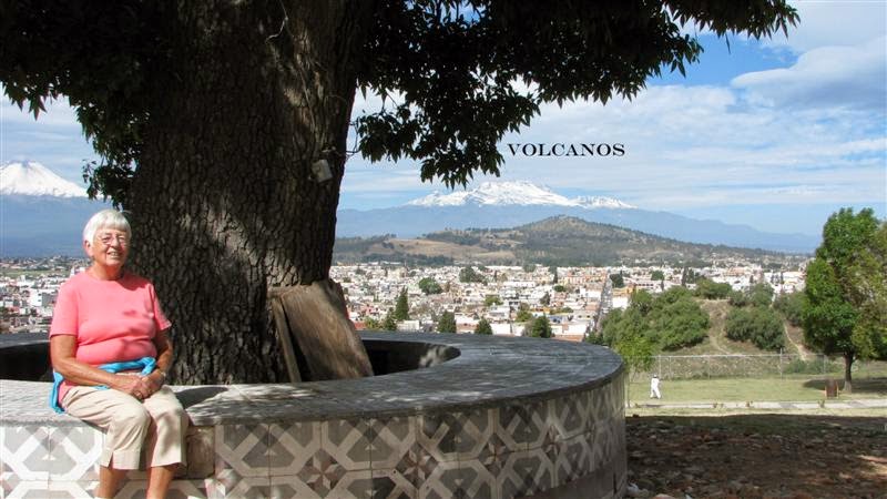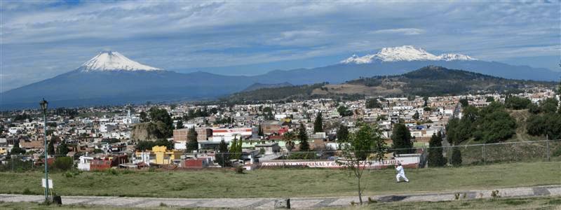 Great views of the volcanoes from on top of the pyramid. Popocatepetl on the left is the most active volcano in Mexico and last erupted in 1998.