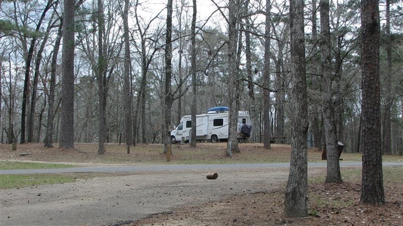 Had a nice visit, a couple of bike rides and we left Houston on Thursday morning to go to the Kisatchie National Forest in Louisiana and their class A campground on Kincaid Lake. We were pleasantly surprised. It had water & 30 amp power and cost only $7.50/night with our Golden Eagle Pass.