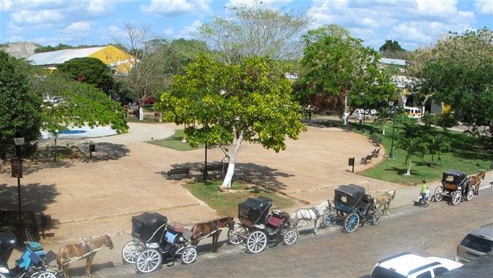 The Convent is next to a large Zocalo with awaiting tourist carriages. A second Pyramid can be seen a few blocks away.