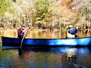 After a great big breakfast at our friends, Paul & Helen in Inverness, we had a short 40 minute drive to our campsite #47 in the Cypress Glen Campground. Silver Lake is a wide spot on the Withlacoochee River. Last spring they re leveled all the campsites and put in new picnic tables. Some of the site pads used to be sloping suitable only for tents, now they are level and larger. We like this site since it is only a short carry to the launch. We can paddle upstream or downstream from here in the slow current.